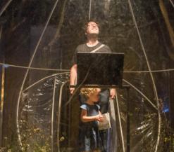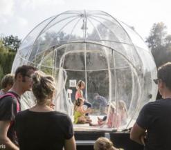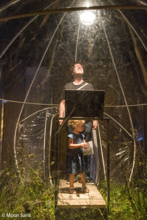 Twee levensgrote stolpen trekken je aandacht. Ze laten je plots even stilstaan. Treed binnen en ervaar de rust der natuur. Zet een koptelefoon op en ga op reis terwijl je stilstaat. De stolpen zijn ‘s avonds mooi verlicht en bevatten elk een korte belevenis van vier minuten.